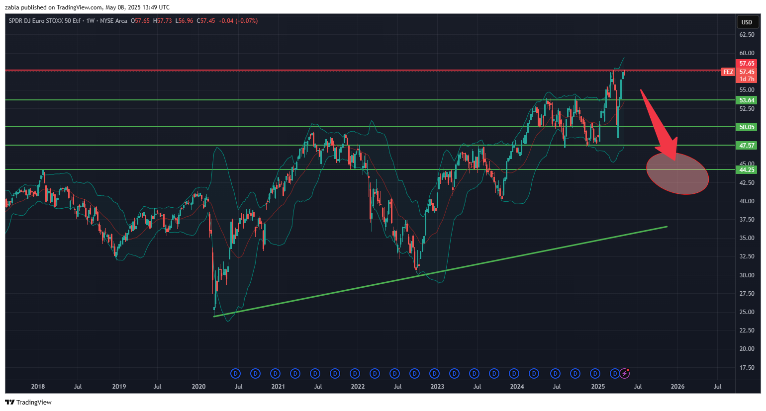 Összefoglalva: Május–júniusban a FEZ ETF árfolyamánál átmeneti visszaesés valószínű, az átlagos célár 43–45 USD között alakulhat. Ami igen dúrvának tünik! Tehát valami készülődik az európai szintéren is. forrás: több pénzügyi oldal, perplexitx.ai.