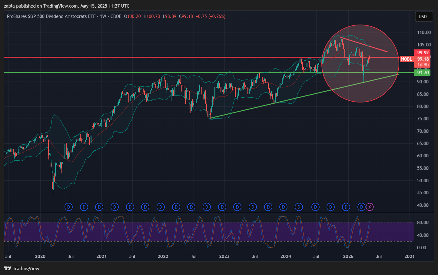 NOBL stabil osztalékfizető USA ETF alap. Az NOBL ETF árfolyama 2025. május közepén 99–100 USD körül mozog.