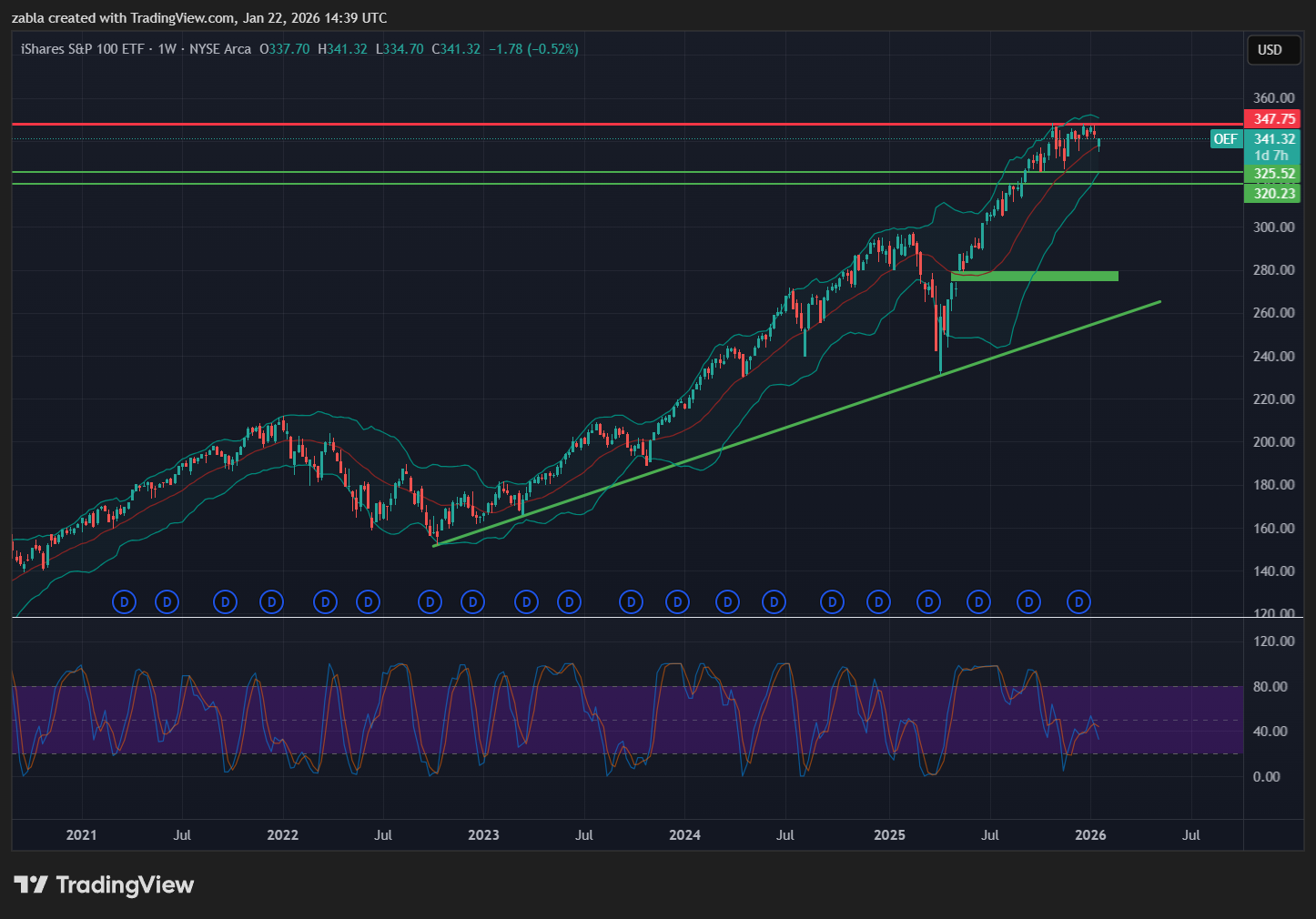 OEF USA Top 100 gyorsjelentések hullámában. Az iShares S&P 100 ETF (OEF) az amerikai piac 100 legnagyobb tőkeértékű vállalatát tömöríti, így februárban is a mega-cap szektor teljesítménye lesz a meghatározó. A hónap folyamán kiemelt figyelmet kell fordítani a negyedéves vállalati gyorsjelentésekre, amelyek közvetlenül mozgatják a legnagyobb súlyú papírokat. Gazdasági naptár szempontjából a február 6-i munkaerőpiaci jelentés és a február 11-i inflációs adatok hozhatnak fokozott volatilitást. A Fed legutóbbi ülésének jegyzőkönyve február 18-án lát napvilágot, ami fontos jelzéseket adhat a jövőbeli kamatpályáról. Február 26-án érkezik a PCE adat, amely a jegybank kedvenc inflációs mutatójaként döntő fontosságú lesz az árfolyam irányára nézve.