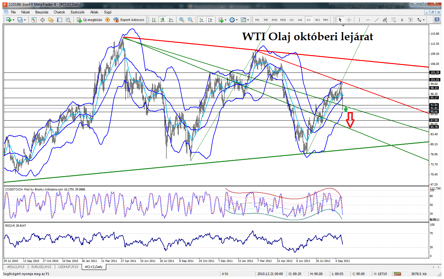 Tovább nézve a legutóbbi, és a tavaly júliusi, szeptemberi mélypontokat, ekkor már nagyon közel lehet a 80 $ alatti árfolyam. Amennyiben így marad, és így alakulnak a dolgok, akkor jó kis pénzeket lehet keresni az olaj kereskedéssel. Fontosabb szintek a vízszintes vonalak jelzik.