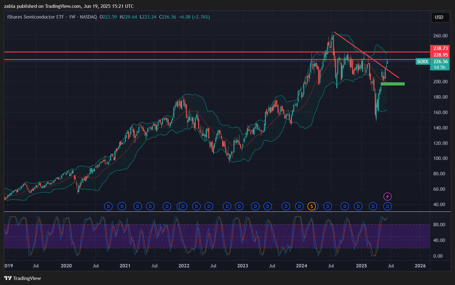 SOXX USA Félvezetői piacon némi korrekció érkezhet. A SOXX (iShares Semiconductor ETF) az amerikai félvezető szektor vezető vállalataiba fektet, és az elmúlt hónapokban jelentős volatilitást mutatott, de fundamentálisan továbbra is az AI és digitalizációs trendek hajtják a keresletet.